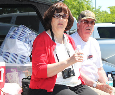 On the 4th of July we went downtown to the annual parade. Jerry and Marc went ahead and set up a place for the whole family. We had a pretty good spot for viewing the parade. Someone even had the great idea of creating our own shade by tying an umbrella to a parking meter.