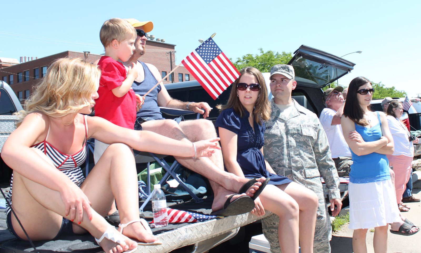 Taylor sits with Marc and Marcus to watch the parade. She looks very patriotic in her striped shirt.