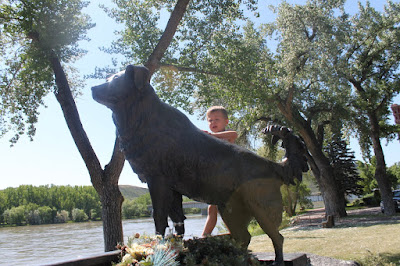 On Tuesday we went to Frt Benton. The kids liked Sheep, a dog that waited by the railstation durning World Was II wainting for his master to return home. The master never returned and Sheep died at the railstation. He is kind of the town's local icon.