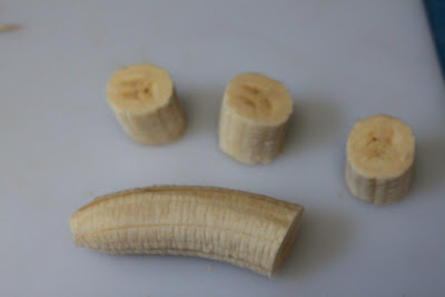 For each snowman, cut the banana into 3 3inch pieces.