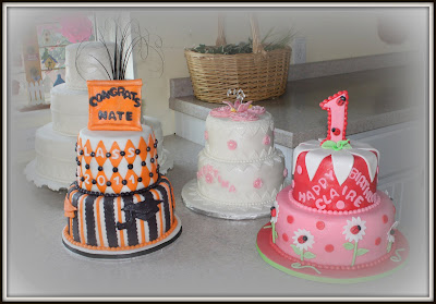 Emma would of loved this week. It was like a Cake Boss Week. This was a very busy week. I had 1 wedding which I did the centerpieces and the cake. Plus I had a graduation, birthday, and christening. The christening cake has the best story to go with it. A year ago a little girl by the name of Sidney died from aides. A few months after Sidney's death a dragon fly flew into the kitchen and settled on the mother's shoulder for a while. Then flew back out the door. That night the mom had a dream where Sidney had come to her and told her she was going to have a little girl and her name was going to be Valentina. Valentina is now two weeks old. The parents are convinced that Sidney is a dragonfly and will look over Valentina.