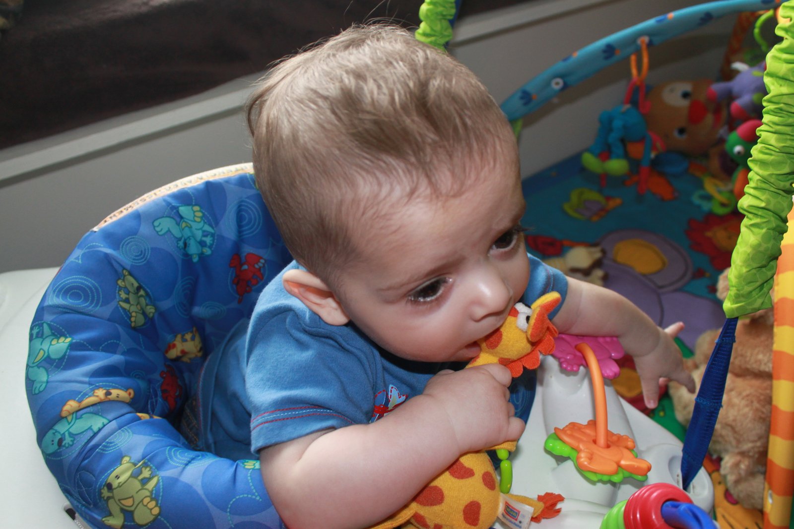 Play in his walker even if he can only go backwards.