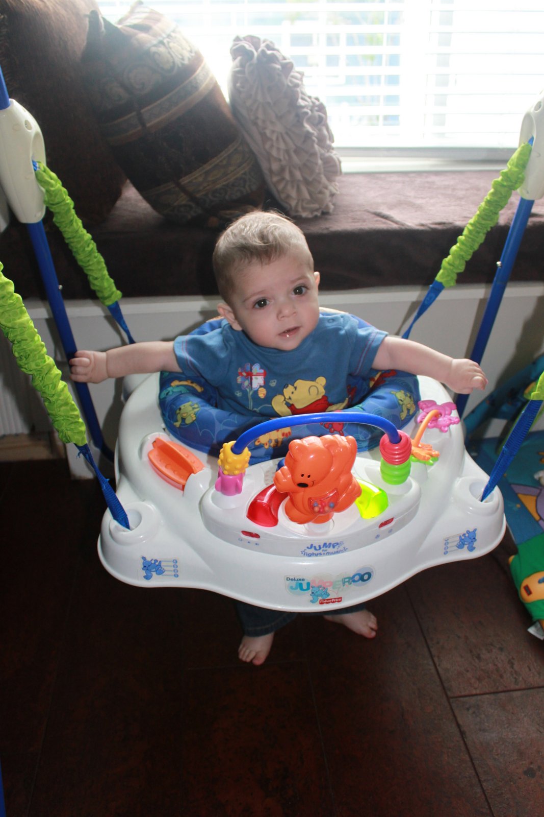 Jump in His jumper. He can really jump high,