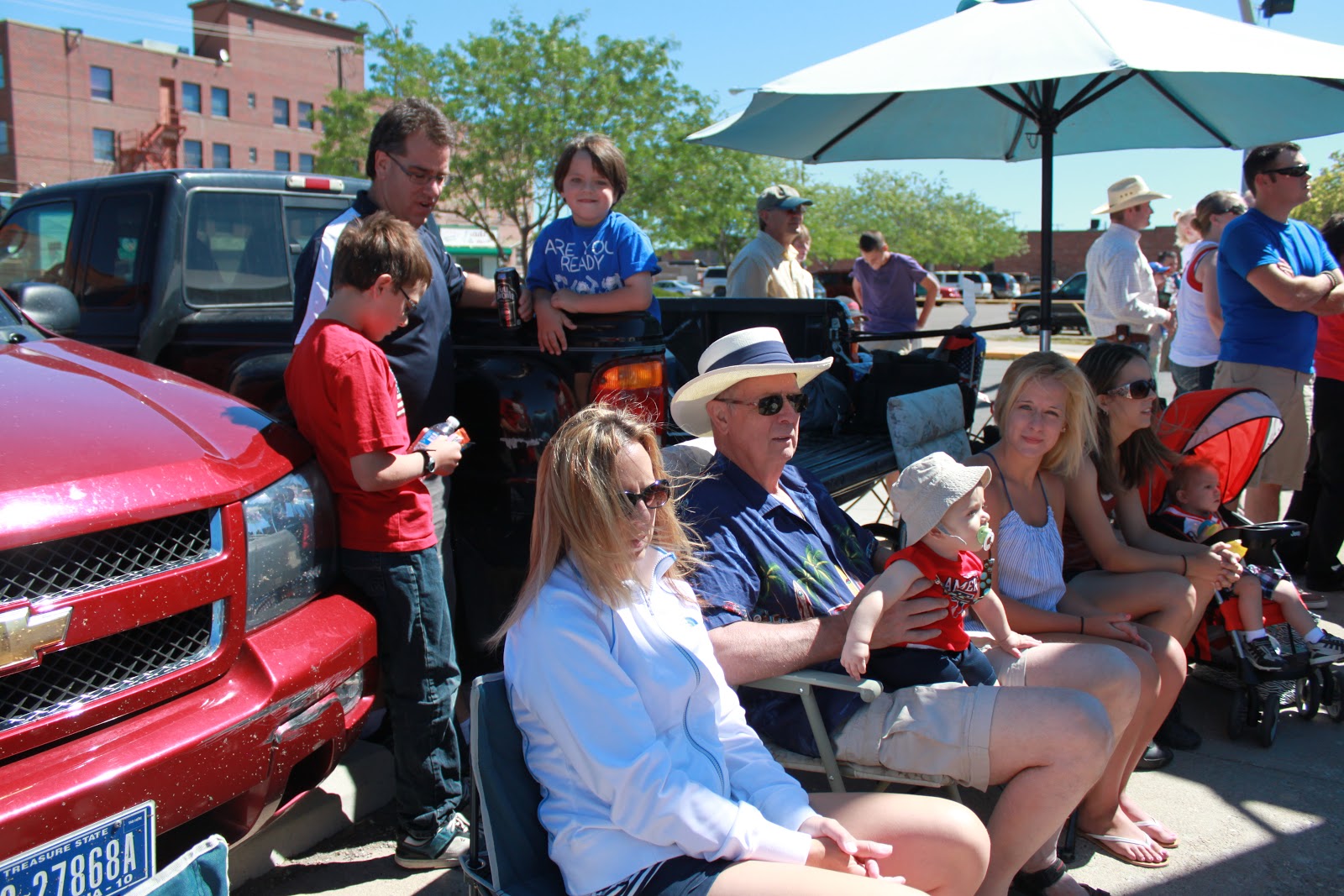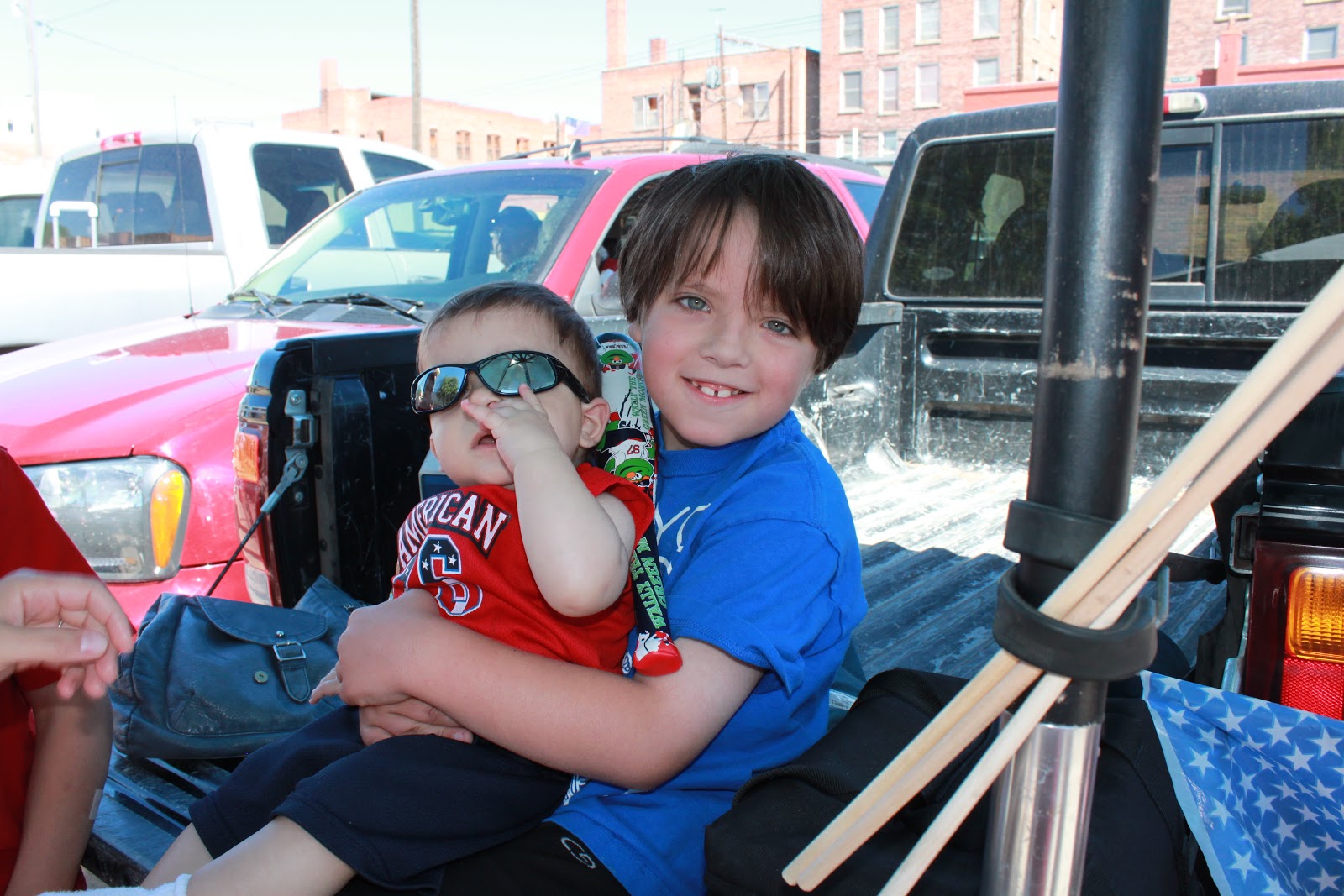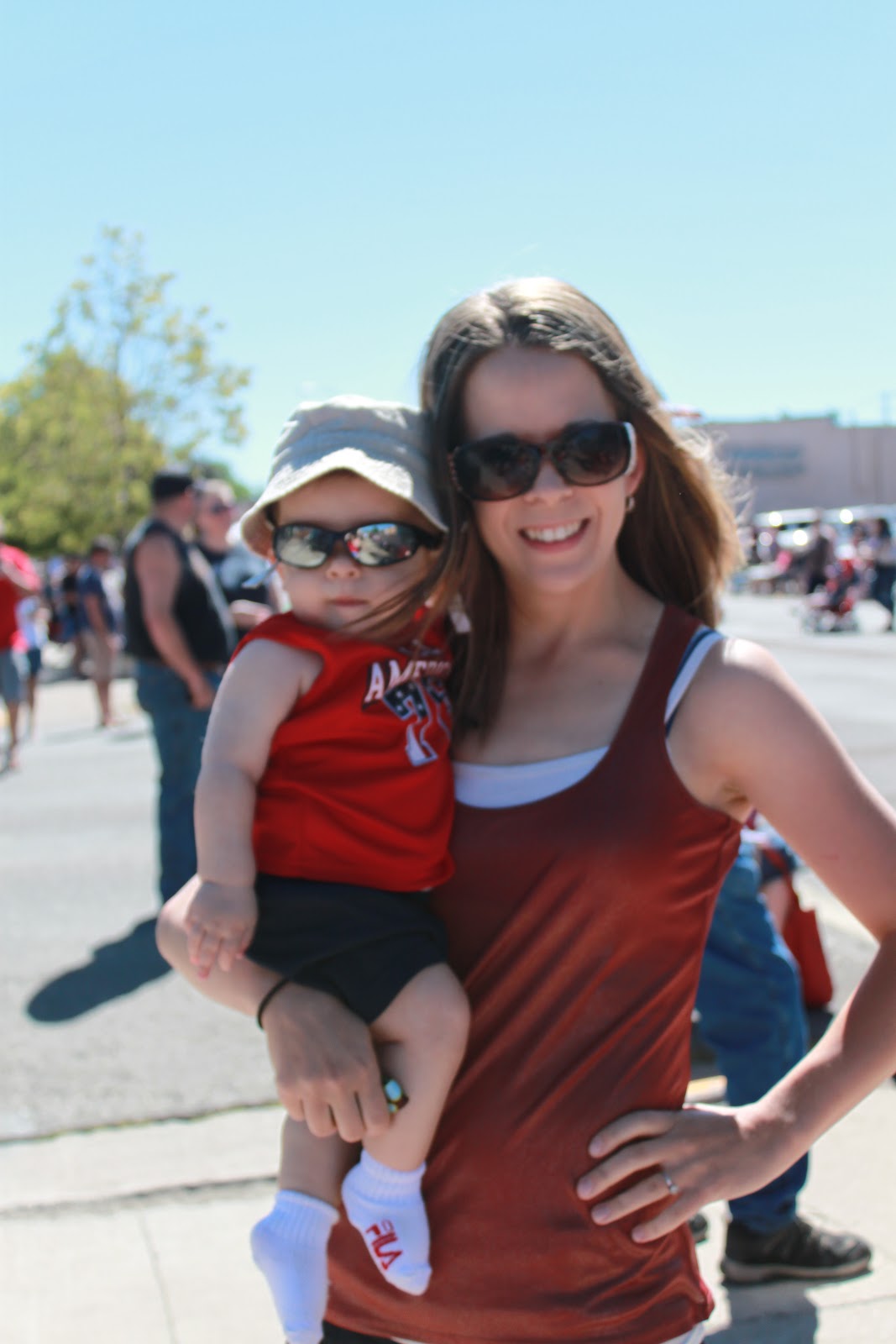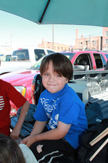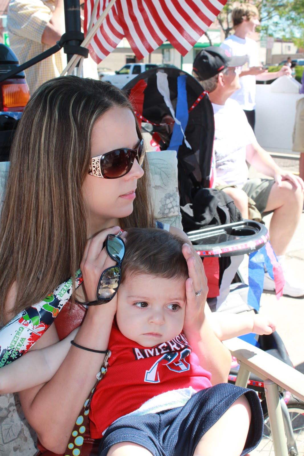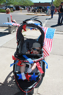 We celebrated the 4th of July by attending the parade.Jaxon's stroller was all decorated. He took first place in a contest on the base the day before.