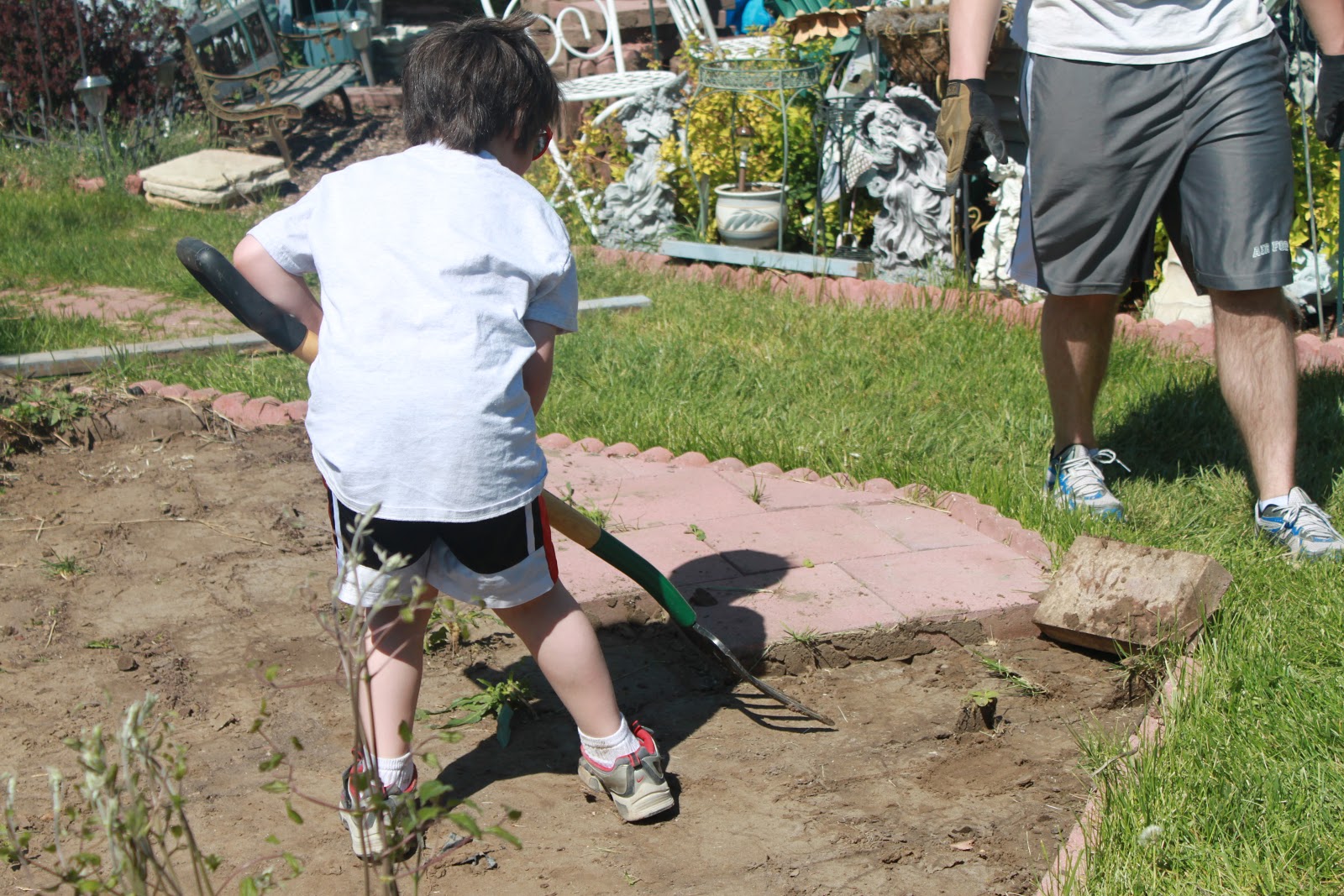 Aiden and Jared removed the old bricks for the patios.