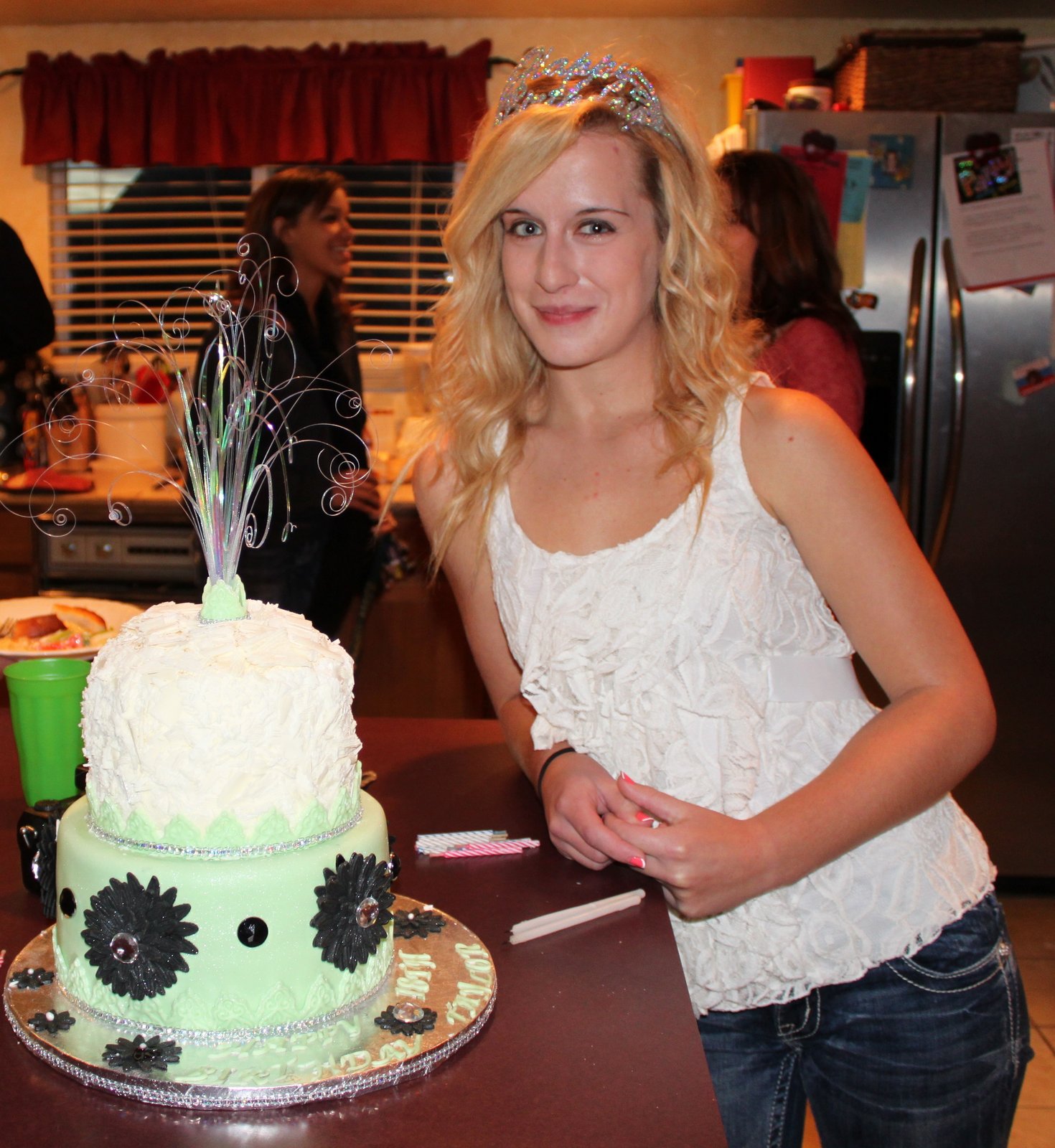 This is the cake Taylor ordered. She wanted the top to be covered with Chocolate shavings.
